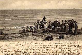 Sidi Gaber. Sur la plage, pêcheurs au départ. Circa 1902. |