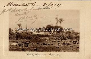 Sidi Gaber. la mosquée et le monument de Sir Ralph Abercromby. Circa 1909 |