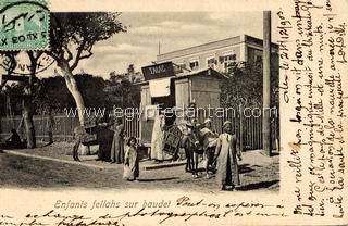 Sidi Gaber. Station de taxi baudet, vers 1901. Cliché Carlo Mieli. |