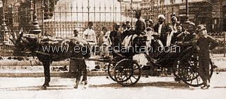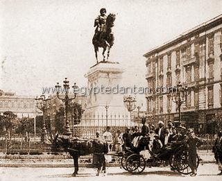 ![]() Détail du document précédent. Hantour devant la statue de Mohamed Ali el Kébir. |