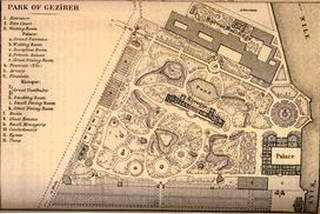 le Caire. Le palais de Guézireh et son parc en 1878. Baedeker, 1878. |