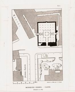 Plan de la mosquée Ezbek, à Ataba, au Caire, démolie en partie en 1869, relevé par Pierre Grand pacha. |