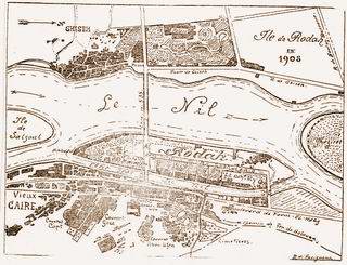 Plan de l'île de Roda, de Guizeh et du Vieux-Caire en 1908, par Onofrio Abbate pacha. |