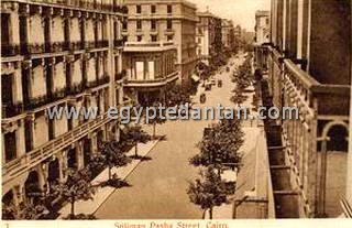La partie sud de la rue Soliman pacha, vers 1911. Sur la gauche au centre le club Mohamed-Ali avant sa surélévation. |