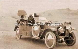 Le Prince-Héritier du Japon, Hiro-Hito, dans la Rolls-Royce du Maréchal Allenby, devant le Sphinx, en 1921. |