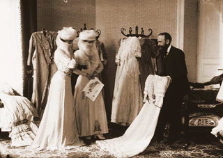 ![]() Un grand couturirer français du Caire en 1909 présente ses modèles à deux dames de la haute société égyptienne. Courtoisie Hassan Kamel Kelesli Morali. |